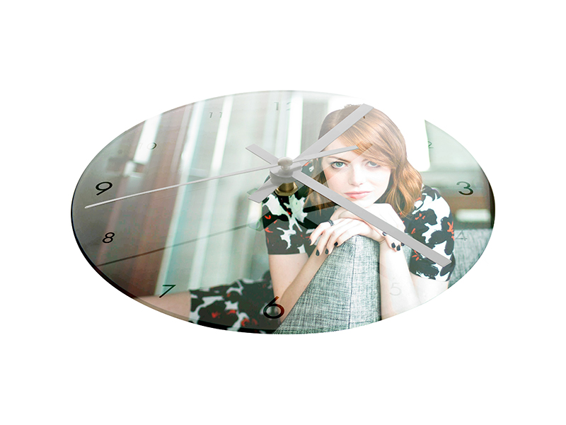 Horloge en verre personnalisable en sublimation. Le kit contient le mécanisme et les aiguilles. Le produit final peut servir d'un cadeau original, etc.
