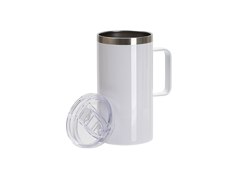 Item Name: Sublimation Blanks 20oz/600ml Stainless Steel Silver Edge Mug with Handle & Slide Lid(White)